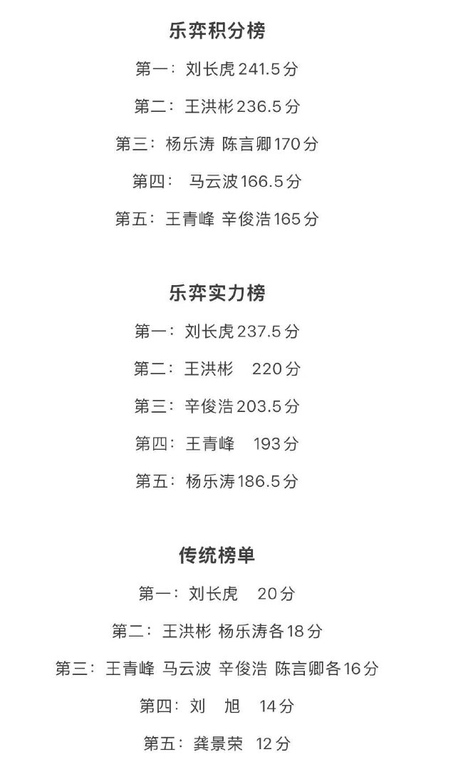 11 月 14 日,乐弈争霸赛最新战报重磅揭晓!成绩榜单已同步更新完毕,邀您共赏棋手们的亮眼战绩!截至目前,赛事已圆满完成 105 盘精彩对局。棋盘之上,选手们全神贯注、巧布棋局,每一轮交锋都尽显围棋竞技的智慧锋芒。自 10 月赛事启幕至 12 月收官,全体棋手将带着对荣誉的热忱,全力冲刺年底 “乐弈争霸赛” ,敬请期待!