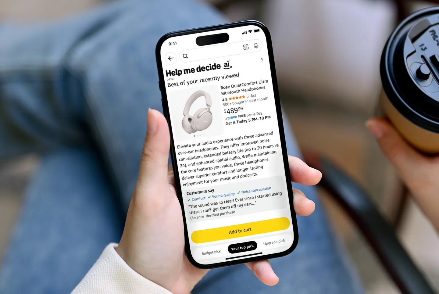 “帮我决策”按钮目前正在美国大规模推广。当用户浏览了多项类似商品后,按钮会显示在购物APP或移动端浏览器页面右上角。点击后,系统会推荐一款产品,并给出选择理由摘要。除此之外,用户还能看到该工具选出的“省钱之选”和“升级之选”,分别对应价格较低和更高端的备选商品。