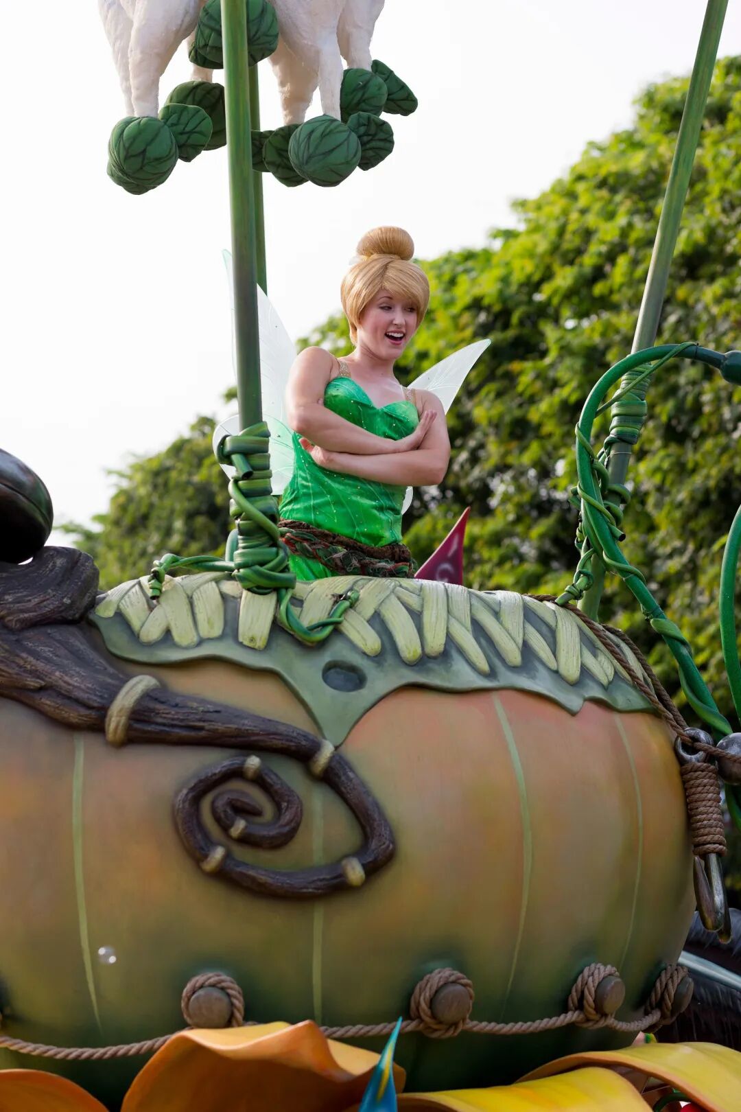 长达14分钟的花车巡游里,之前只存在于动画荧屏的人物带着各自的故事向你招手,伴随音乐旋转大笑舞蹈[16]。你不必再为小美人鱼爱丽儿公主的爱情故事心碎,她此刻正在王子牵着手深情凝视;《冰雪奇缘》中的女王艾尔莎站在冰雪宫殿倾洒魔法,玲娜贝尔蹦蹦跳跳奔过来,毛茸茸的尾巴一甩一甩,米奇和米妮手牵着手转圈。