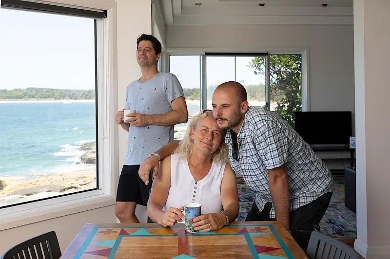 他们在Bundeena的海滨住宅几十年来一直是Smith家族的度假胜地,包括Cecily Smith的女婿Brett Ryder(左)和侄子Josh Cross。照片:Janie Barrett