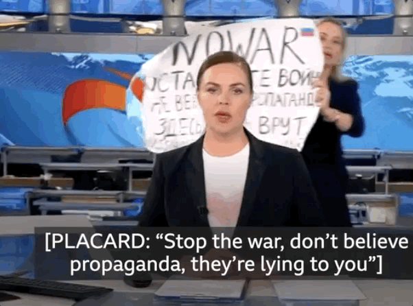 今年43岁的奥夫扬尼科娃是俄罗斯电视制片人,此前受雇于俄罗斯第一频道。今年3月,她在俄罗斯电视新闻直播时闯入镜头,高举英俄双语混用的反战标语牌,上面写着“停止战争,不要相信宣传,他们在骗你,俄罗斯人反对战争”。