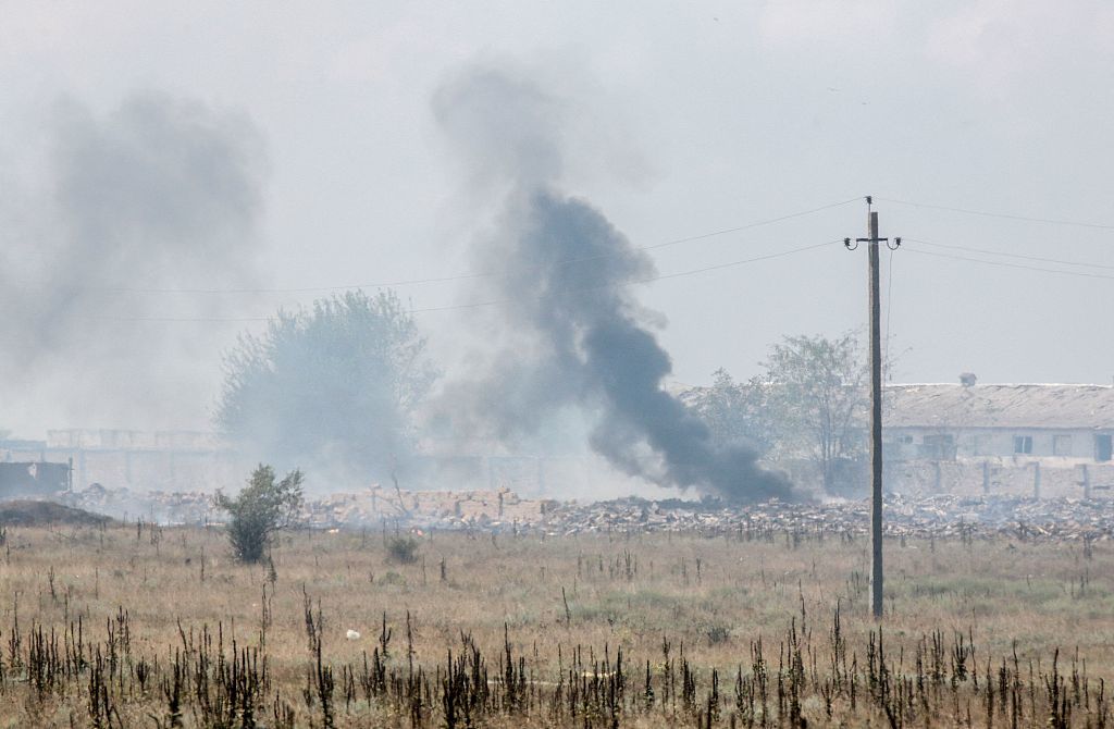 8月16日,克里米亚,一个军火库发生爆炸,浓烟滚滚。图源:视觉中国