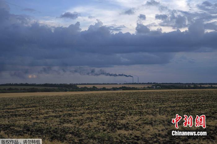 2022年7月22日,乌克兰东部顿涅茨克地区,发电厂背景下的农田。