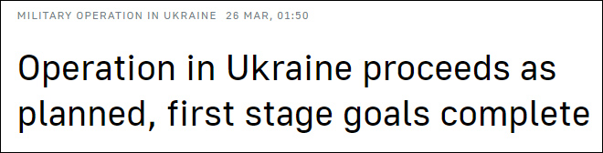 原标题:俄军特别行动一阶段主要任务已完成:将集中精力解放顿巴斯