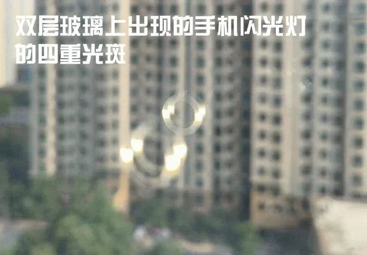 那这些“月亮”到底是哪来的?答案其实很常见:玻璃反射造成的重影。生活中我们经常会遇到类似情况:比如透过双层玻璃拍窗外的景物,如果手机斜拍并且开了闪光灯,那么拍摄的照片上就会出现双层玻璃反射出的闪光灯的四重光斑。