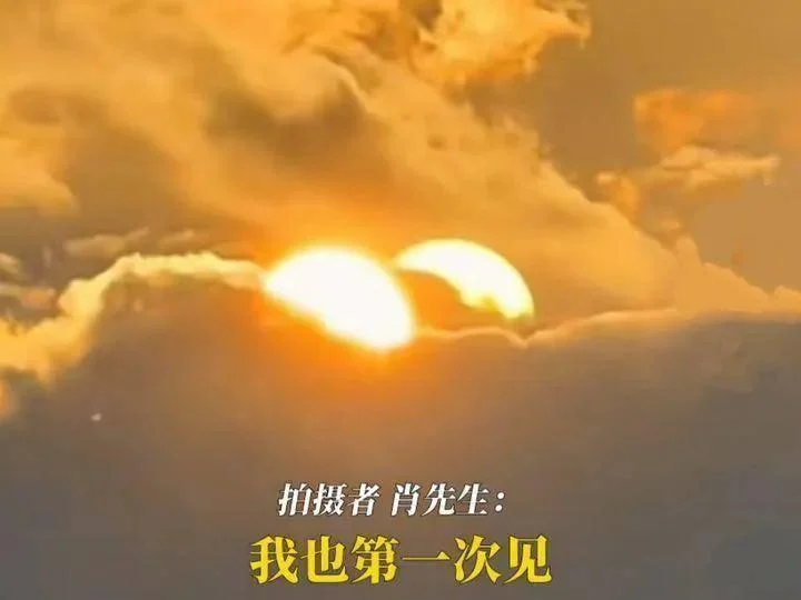 2023年7月7日,四川宜宾一位姓肖的男士拍到天空中出现了两个太阳,视频中两个太阳一明一暗掩映在云层中,拍摄者肖先生还表示“自己也第一次见,是不是宇宙卡Bug了?”其实也是一样的道理,拍摄者是清楚怎么回事的,只是故弄玄虚罢了。
