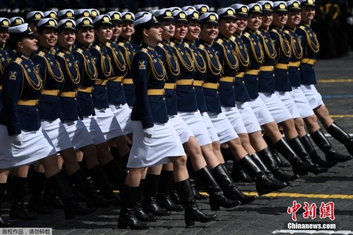 伴着《喀秋莎》的旋律,由律师、金融、技术专家等组成的女兵综合方队经过红场。