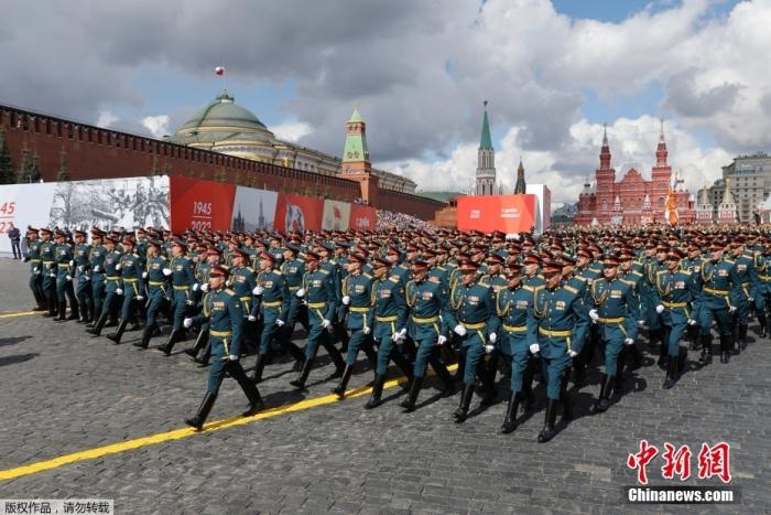 徒步方阵方面,苏沃洛夫军校学员以及纳希莫夫海军学校摩尔曼斯克分校的学员经过红场,接受检阅。
