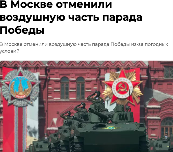 原标题:俄罗斯红场阅兵空中表演因天气原因取消