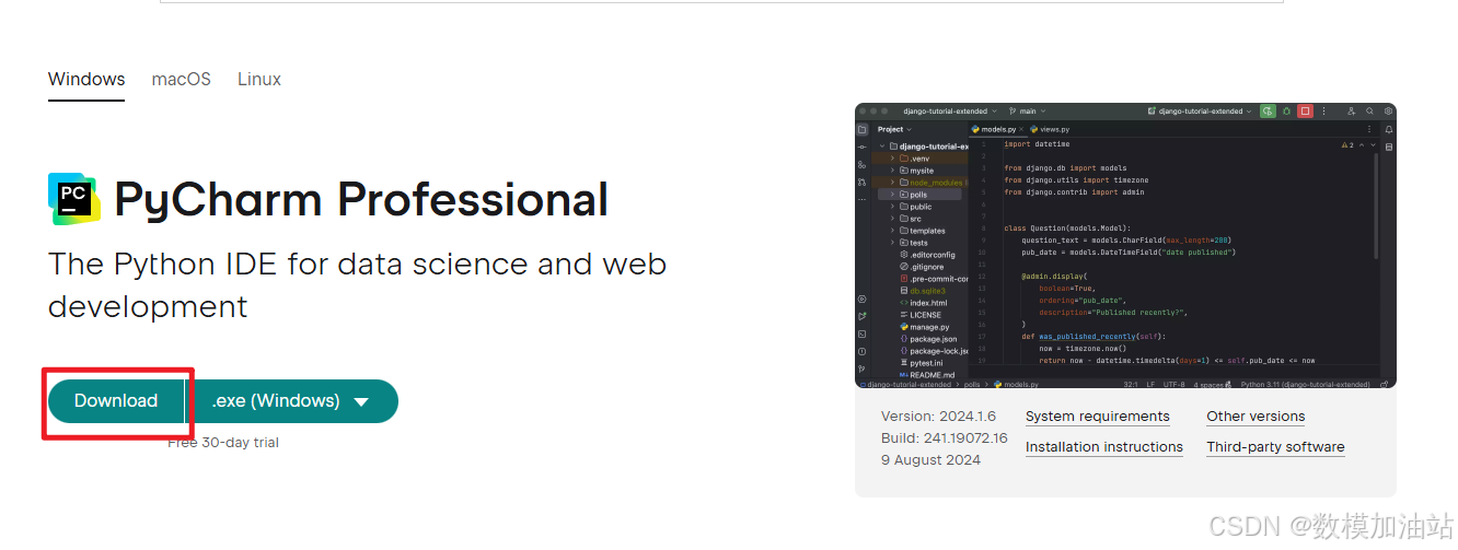 3.在下载的同时可以先去pycharm官网进行pycharm的下载