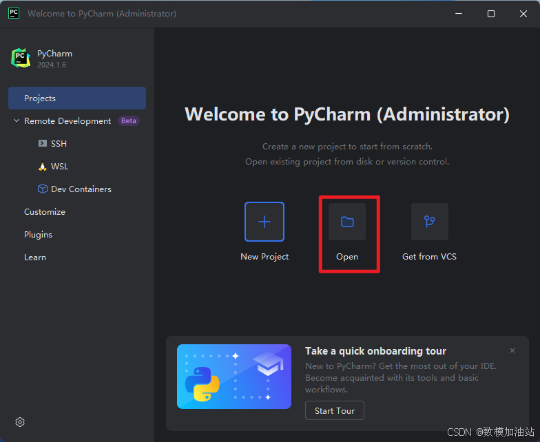 20.我们在打开pycharm软件,点击【open】设置数据储备位置