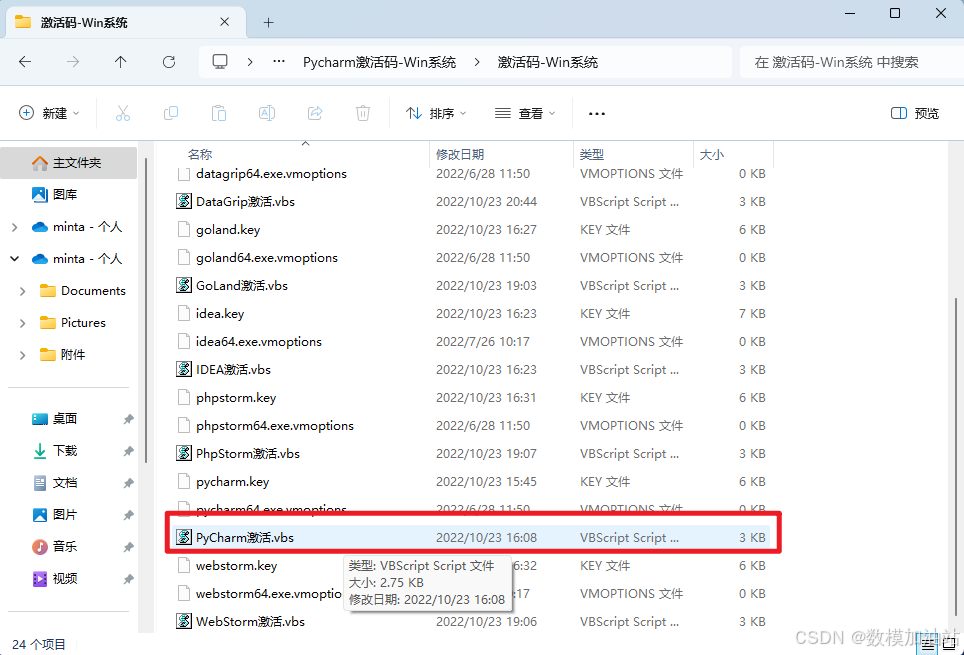 18.我们打开下载好的活跃码,改变pycharm的使用时间,打开文件包,找到pycharm的对应选项,双击