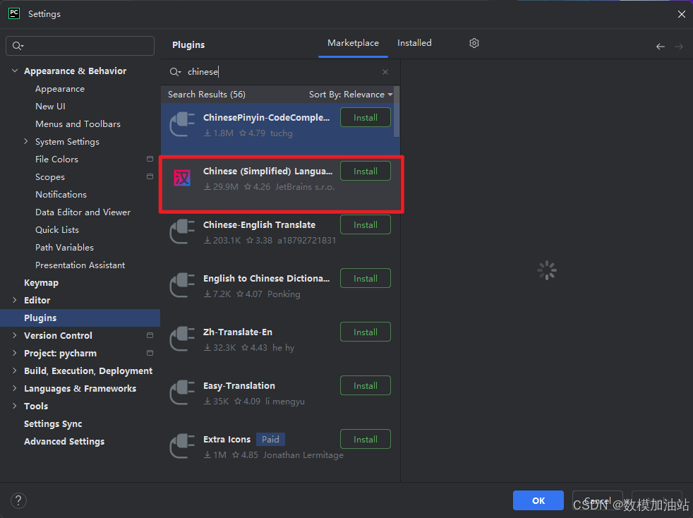 24.在搜索框里输入Chinese,选择中文语言,点击【install】