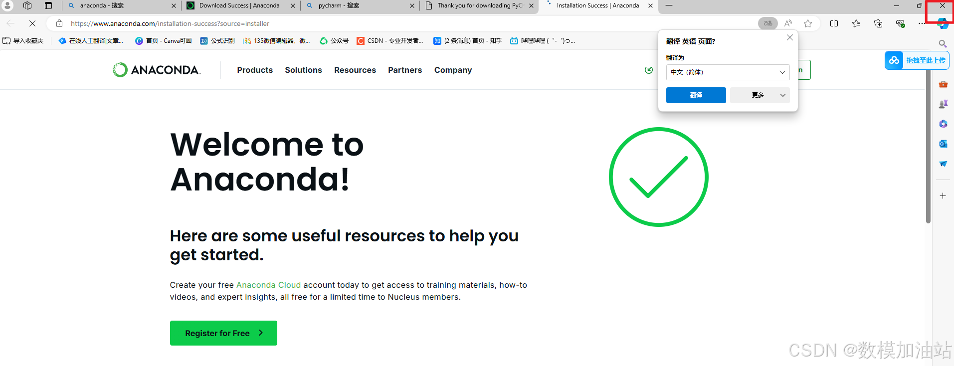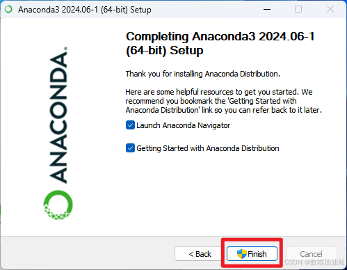 16.此时会跳出一个页面提示已经成功安装Anaconda,直接关闭页面