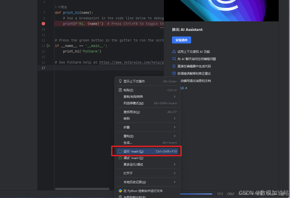 37.在代码处点击【运行‘main’】