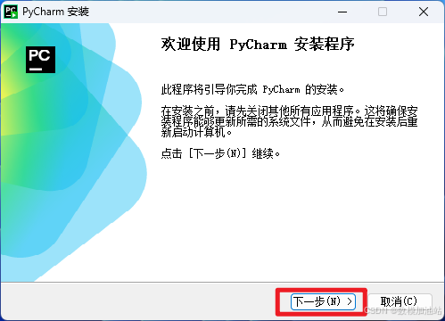 9.在等待过程中,我们可以先安装pycharm,打开刚开始下载好的安装软件,点击【下一步】