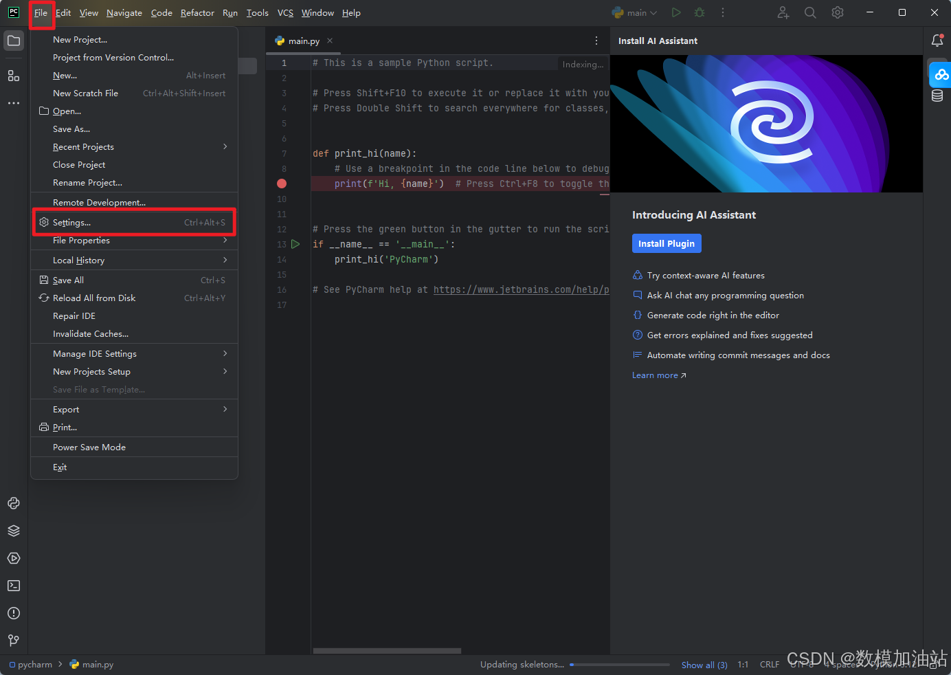 22.紧接着我们将软件语言改为中文,打开【File】下的【Settings】