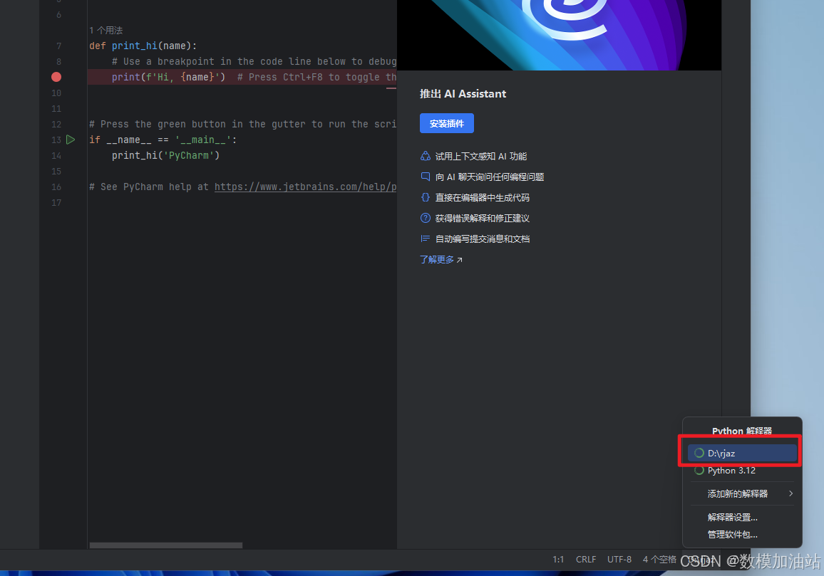 28.选择项目pycharm下的python解释器