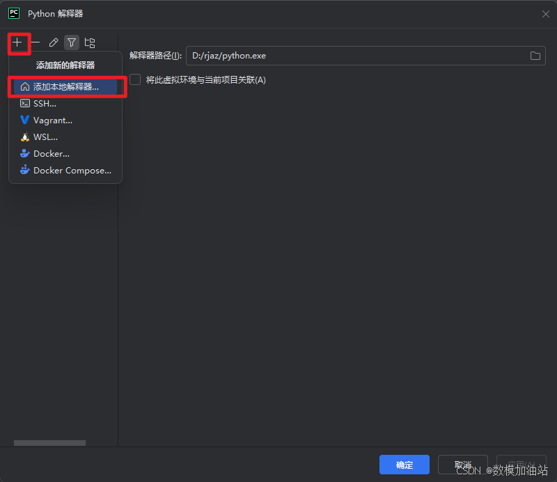 30.点击【+】,选择【添加本地解释器】
