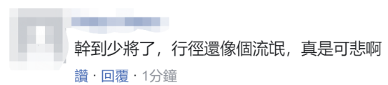 还有网友吐槽,“干到‘少将’了,行径还像个流氓,真是可悲啊”。↓