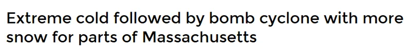 预计到周六清晨,波士顿或将迎来近三年来首个夜间零度以下的气温,而波士顿以外的绝大部分城镇,气温会轻松跌破零度。此次寒潮也将让积雪层在周末难以出现有效融化。