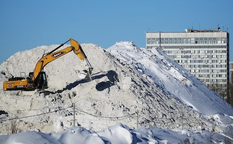 当地时间2026年1月30日,俄罗斯莫斯科,一场降雪过后,一台挖掘机正在清理巨大的积雪。