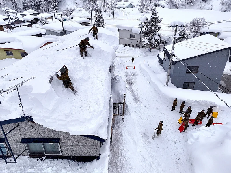 日本创下降雪量骇人纪录。新潟县积雪厚度达2.5米,是常年的2.7倍,远超一层楼高。持续降雪已致30人死亡,多数遇难者死于除雪或突如其来的“屋顶雪崩”。