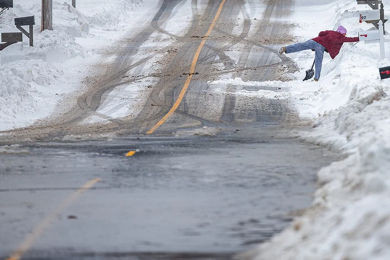 当地时间2026年2月1日,美国马萨诸塞州锡丘特,一名女子在特纳路取邮件。