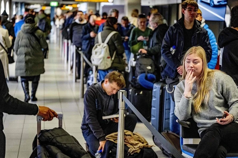 国际空港首当其冲:巴黎戴高乐机场约40%的航班被取消,候机楼内挤满滞留旅客;阿姆斯特丹史基浦机场情况更糟,单日取消航班超700架次,约1000名旅客不得不夜宿机场的简易床。