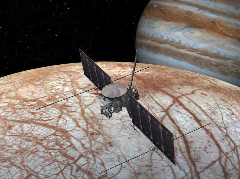 “朱诺号”测出的29公里冰壳厚度,不仅没让谜团终结,反而让探索目标更清晰了。接下来,人类将开启对木卫二的“密集探访”:NASA的“欧罗巴快船”探测器正在奔赴木星的路上,它携带了9种科学仪器,将近距离观测冰层裂缝、分析表面物质,甚至尝试捕捉从冰层喷出的水汽样本;欧洲空间局的JUICE航天器也将同期抵达木星系统,从不同角度协同探测。