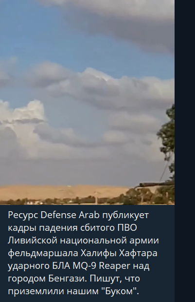 随后,22日晚些时候,俄罗斯雇佣兵集团“瓦格纳”则在“电报”相关频道上宣称,是“瓦格纳”成员在班加西附近使用防空系统在班加西附近击落了一架美军的MQ-9无人机。