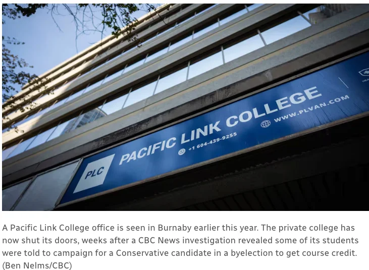 卑诗省高等教育厅在一份声明中表示,Pacific Link College存在多项违规行为,包括“未按批准的方式开设课程、考勤制度不当、实习安排与课程学习目标不符,以及招收不符合入学要求的学生”。