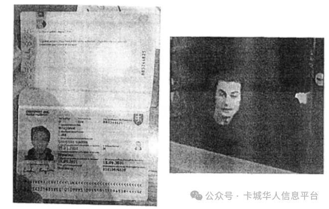 这些模糊不清的图片被包含在对梅杰多维奇的欧洲逮捕令中,图片显示了据称他使用的卢卡·克拉约维奇名下的护照,以及他在一家酒店的监控录像。图源:District Public Prosecutor’s Office, The Hague
