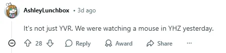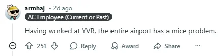 一名加航前员工透露:“我在温哥华国际机场工作过,整个机场都有鼠患。”
