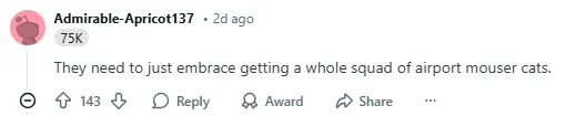 有网友建议说:“机场干脆收养一队捕鼠猫吧!”