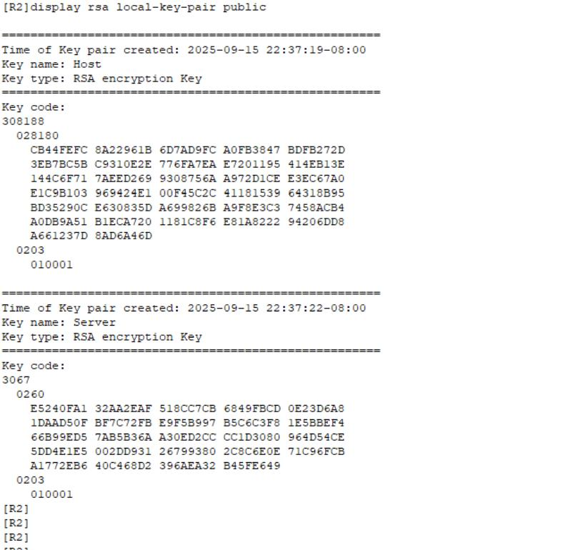 [R2]rsa local-key-pair create //生成本地RSA密钥