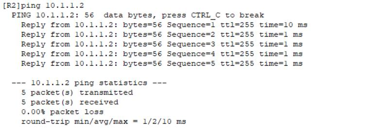 [R2-GigabitEthernet0/0/0]ip address 10.1.1.2 255.255.255.0