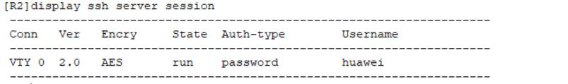 [R2-aaa]local-user huawei service-type ssh//本地用户的接入类型为SSH