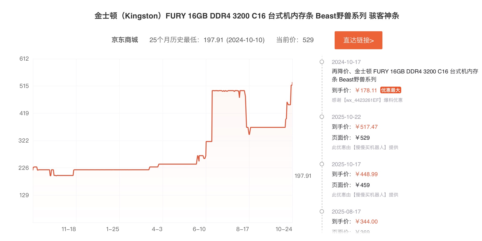 多位模组厂人士向记者表示,从今年一季度开始,DDR4的原厂价格持续走高。根据慢慢买App,一款金士顿(Kingston)的DDR4台式机内存条,价格从今年3月开始急速上涨,目前售价已超去年同期两倍。手机等终端市场也对存储涨价产生反馈。23日发售的Redmi K90系列手机部分版本售价较上一代上调了100-400元不等,小米集团总裁卢伟冰对此公开表示,来自上游的成本压力,已真实的传导到了其新品定价上。他坦言,无法改变全球供应链的走势,存储成本上涨也远高于预期,且会持续加剧,但小米希望这份诚意能够让大家理解。