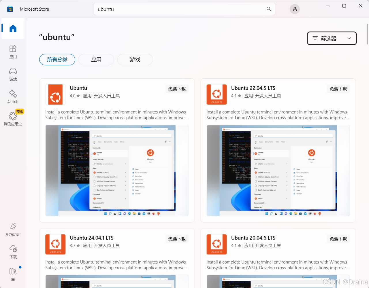 安装ubuntu有多种方式,第一种是官方建议方式,但微软商店日常抽风,我没弄成。可以试试,不行的话和我一样用第二种。