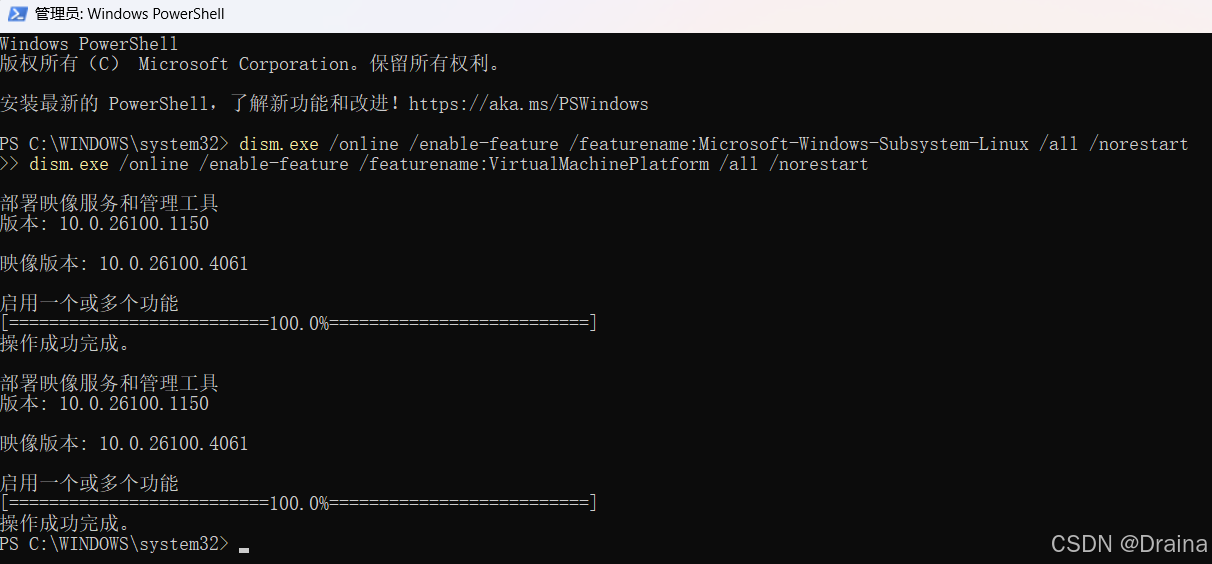 (启用windows中“适用于 Linux 的 Windows 子系统”可选功能、启用 虚拟机平台 可选功能。这是安装wsl的前提。)