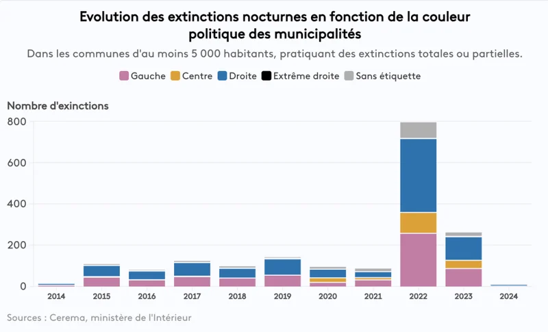 2022 年,该市在中间派市长领导下开始实施夜间熄灯。随后,当地发生了一系列夜间违法行为,包括纵火事件,引发了激烈争论。尽管警方和司法部门明确表示,这些事件并未发生在熄灯时段,但反对声音依然强烈。