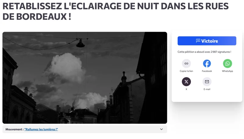 比如,在波尔多,一位三十多岁的女性在2024年秋天发起了一份请愿书。她在文中写道,自己每次在凌晨一点后回家,都会感到“逐渐加重的焦虑”。这份请愿书最终收集了近3000个签名。她们并不一定认为“关灯一定会导致犯罪增加”,但黑暗本身,就足以制造恐惧。