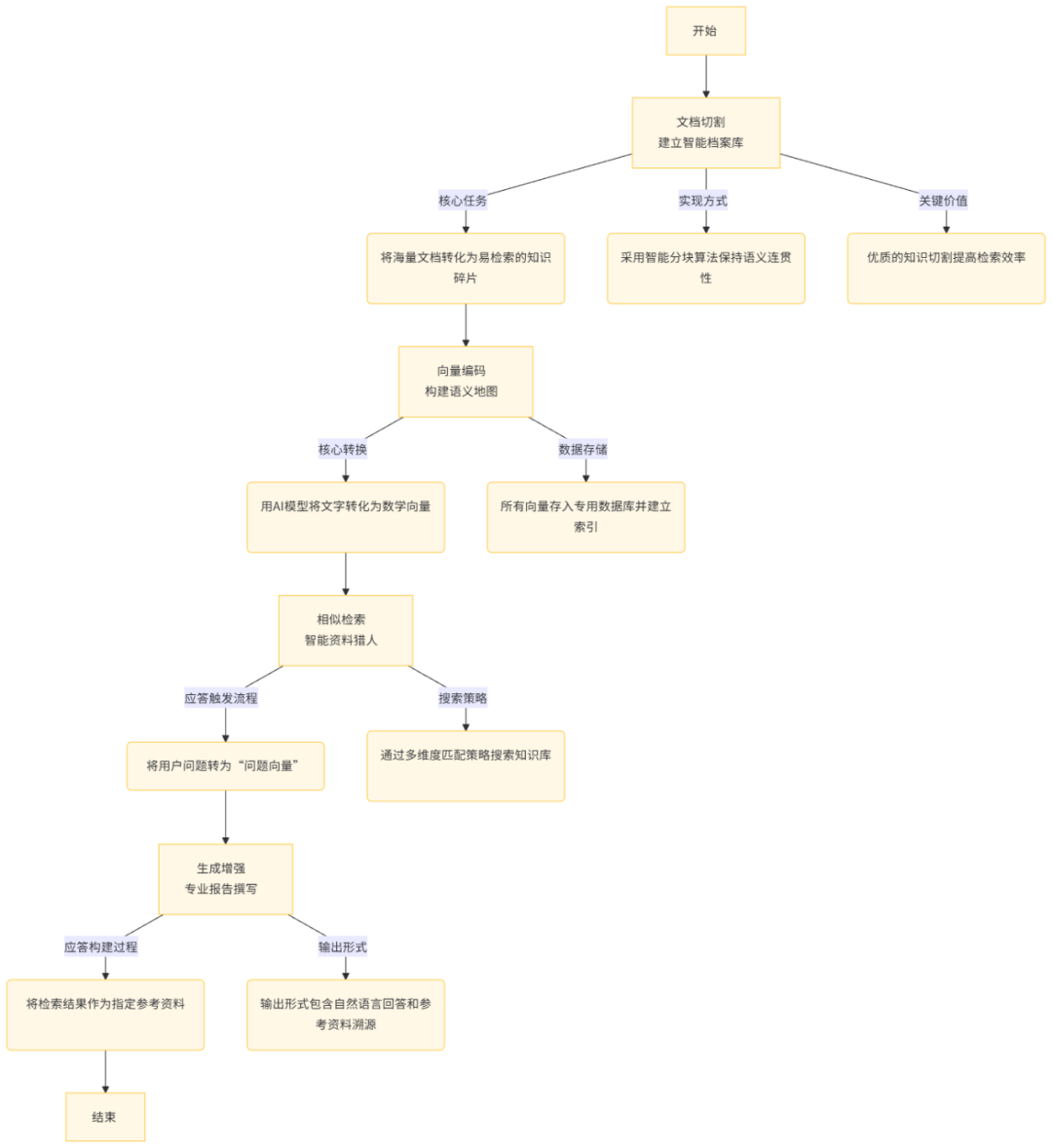 核心任务是将大量文档转化为易于检索的知识碎片,这一过程类似于将厚重的词典拆解成单词卡片。通过采用智能分块算法,保持语义连贯性,同时给每个知识碎片打上标签(如“技术规格”、“操作指南”)。这一步骤的关键价值在于,优质的知识切割如同图书馆的分类系统,决定了检索效率。