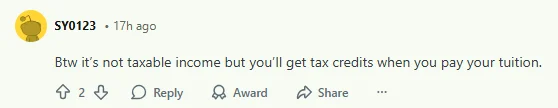 有网友提醒道:“这笔奖学金不需要按照收入来交税,但是你用这笔钱去交学费的话,还会拿到退税!”不得不说,这真的是太爽啦!学习好啊!真的得好好学!