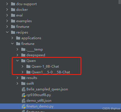 下载需要微调的模型文件保存到本地,以下代码下载 Qwen/Qwen1.5-0.5B-Chat 模型文件: