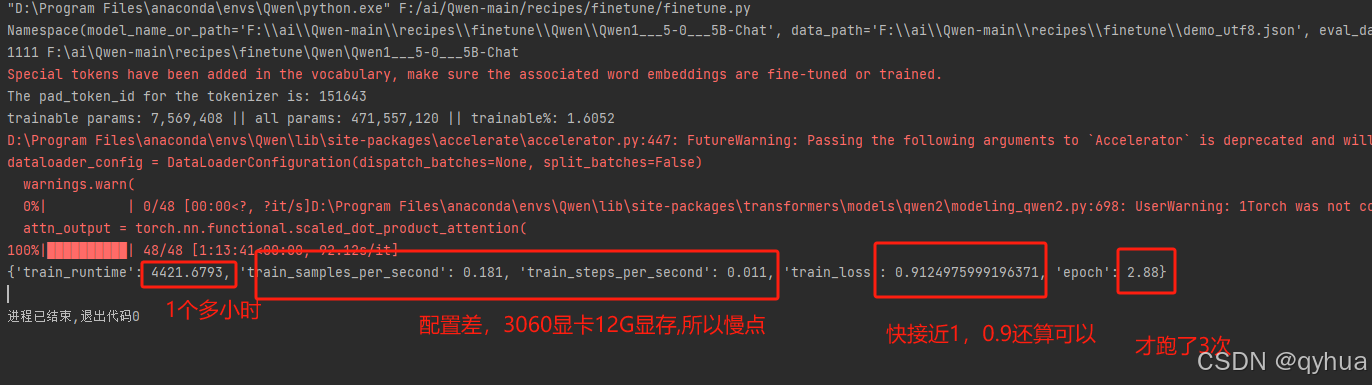 本次微调最开始是打算使用Qwen/Qwen-1_8B-Chat的模型作为微调对象,调试过程中不断报GPU显存不够,该模型需要的显存超过12G,因此后面改用 Qwen/Qwen1.5-0.5B-Chat 模型。