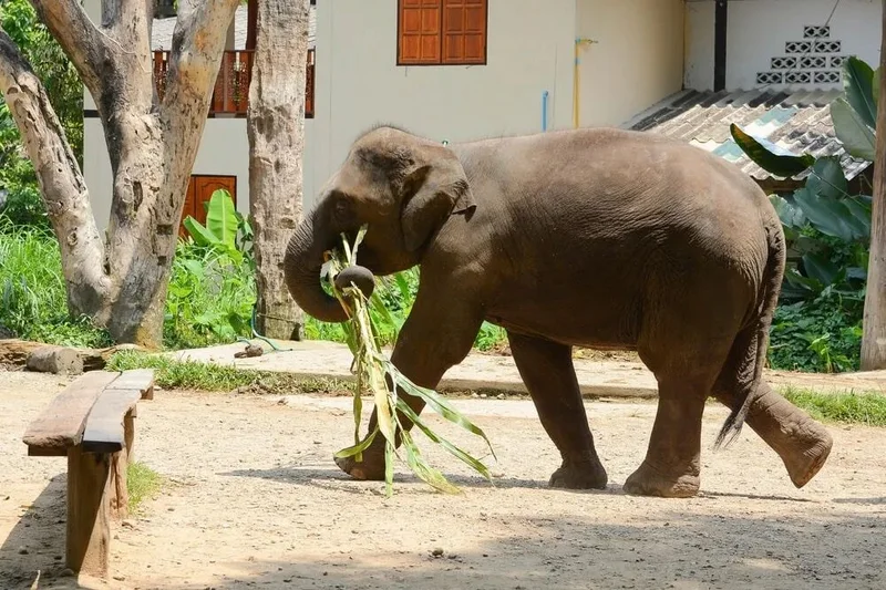 大象会食用人类种的香蕉,因为相比于野生植物,香蕉有着更高的营养价值。|Samui Elephant Sanctuary
