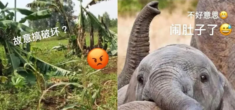 不过近几年,当地的农民似乎对大象有了新的怨言。当地农民一觉醒来,就发现自家的农田被大象破坏得乱七八糟,本以为是饥饿的象群走投无路,在夜间偷吃农田里的香蕉和木瓜。但仔细一看,却发现这群大象只是破坏了香蕉和番木瓜树的茎叶,真正有价值的果实却被踩烂。