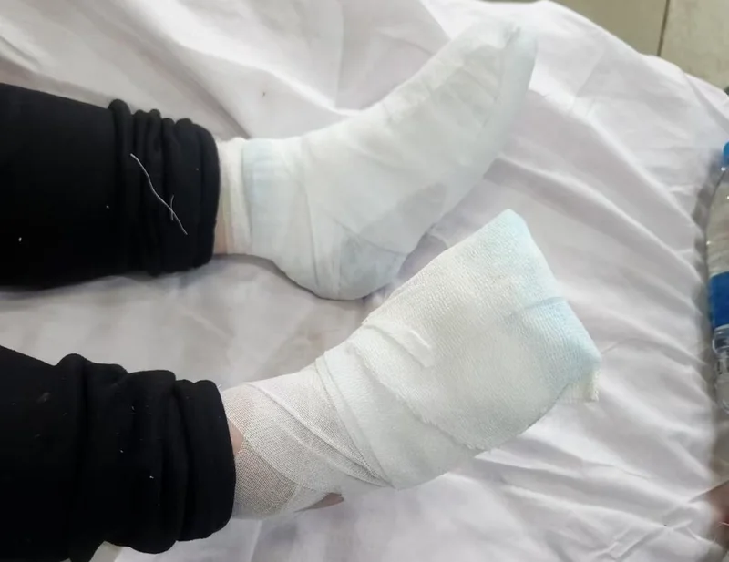 ▲小陈的双脚被冻伤